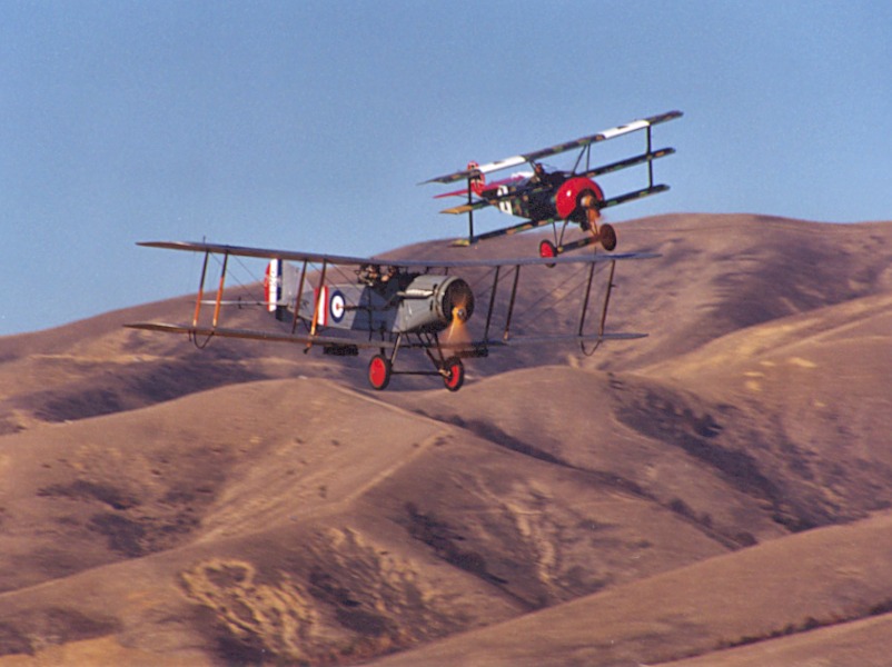 Dr-1 and Bristol Fighter over Wither Hills of Marlborough NZ