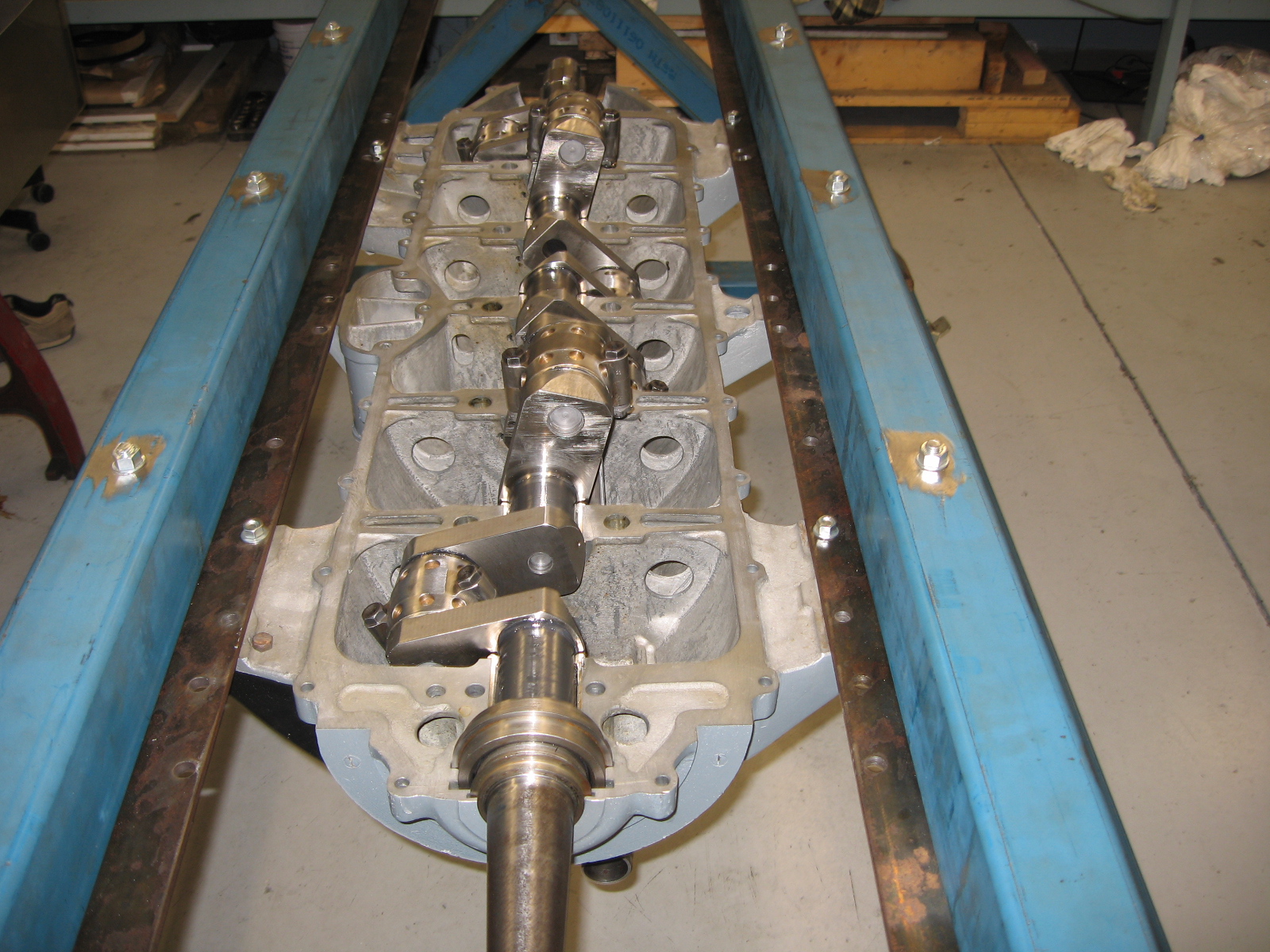 Mercedes crankcase with new bearings and polished crank in place