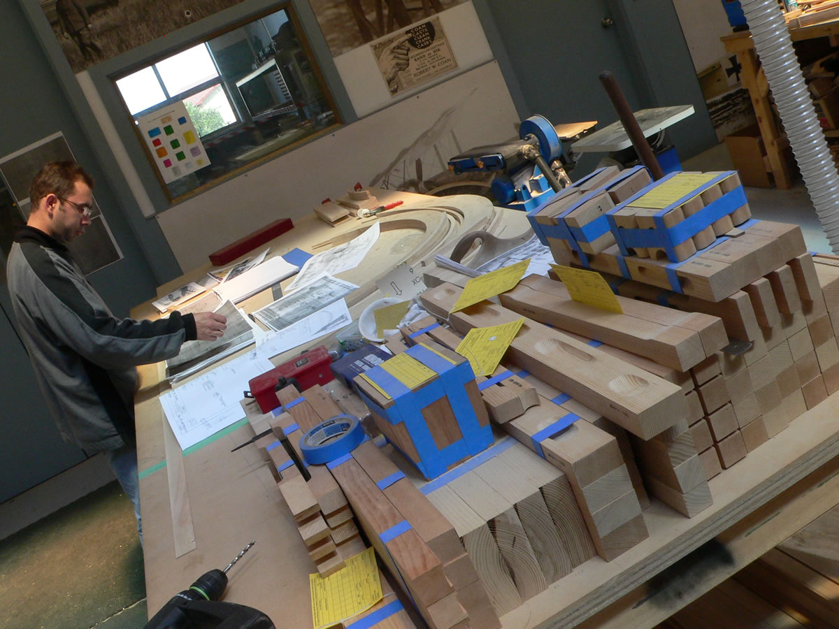 Warren Rangi works from original RAF drawings to create the wooden parts for the FE.2b nacelle.
