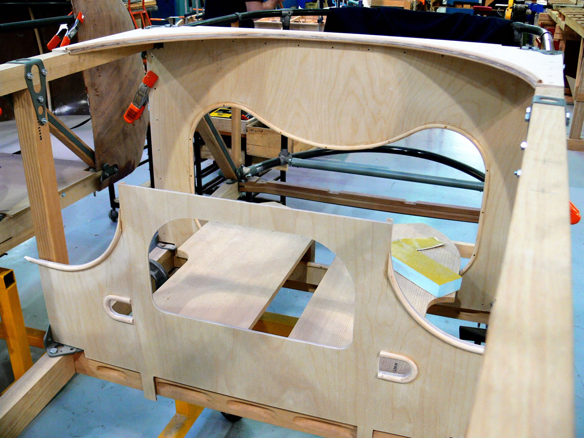 Looking more like fine cabinetry than an airplane, these bulkheads form part of the pilots cockpit, the arches allow room for the pilot to operate the rudder bar.