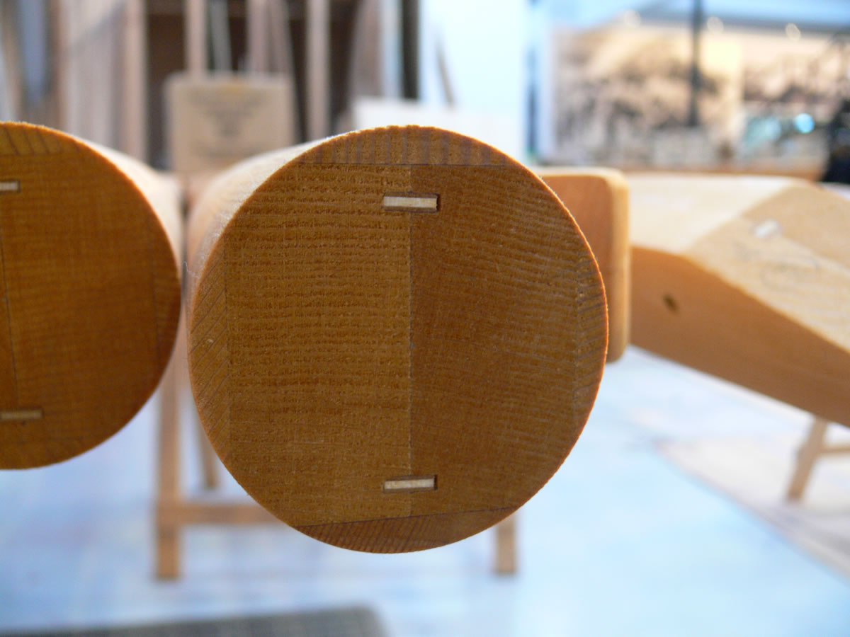 The ends of each outrigger are fitted with metal sockets for attaching to the airframe. here the plywood splines are clearly visible