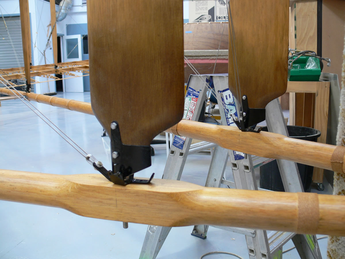 The aft two vertical struts on the outriggers are trial fitted before RAF streamlined wires are in place.