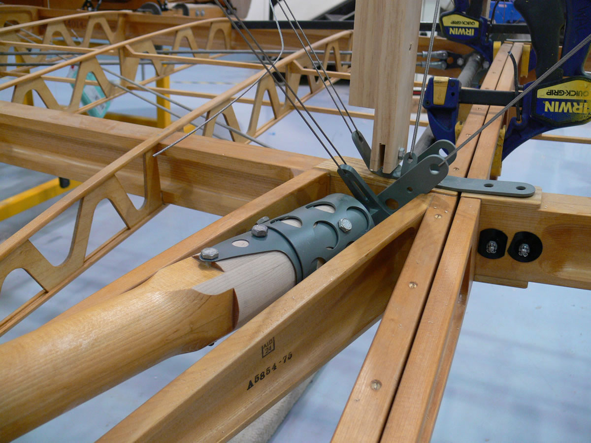 Each outrigger terminates in a round socket which is bolted to the outrigger and is attached to the centre section with a single bolt.