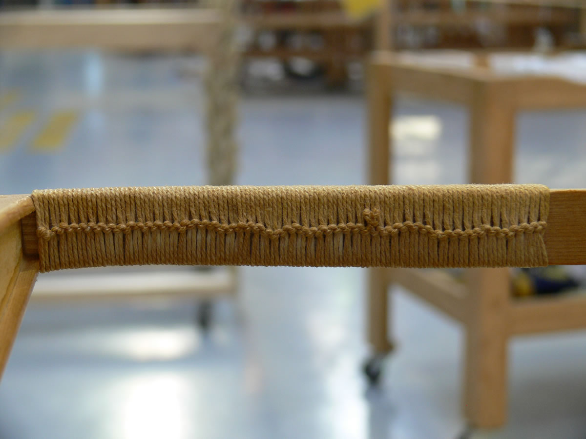 Each scarf joint where the hardwood tip bows join spruce leading edges are treated in this fashion, bound with linen cord.