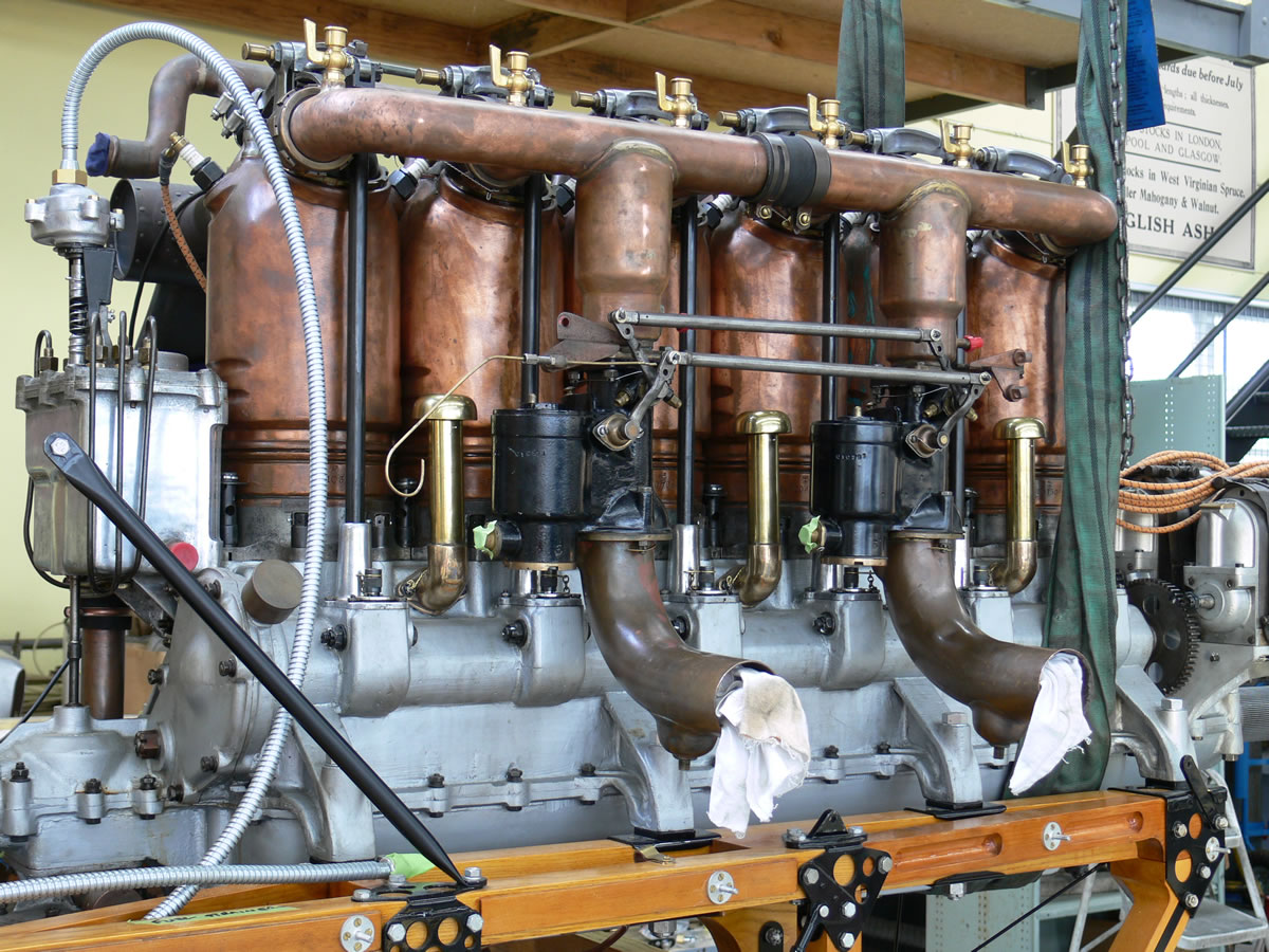 The Beardmore is a good looking engine with its copper water jackets, brass crankcase breathers and cast aluminum crankcase.