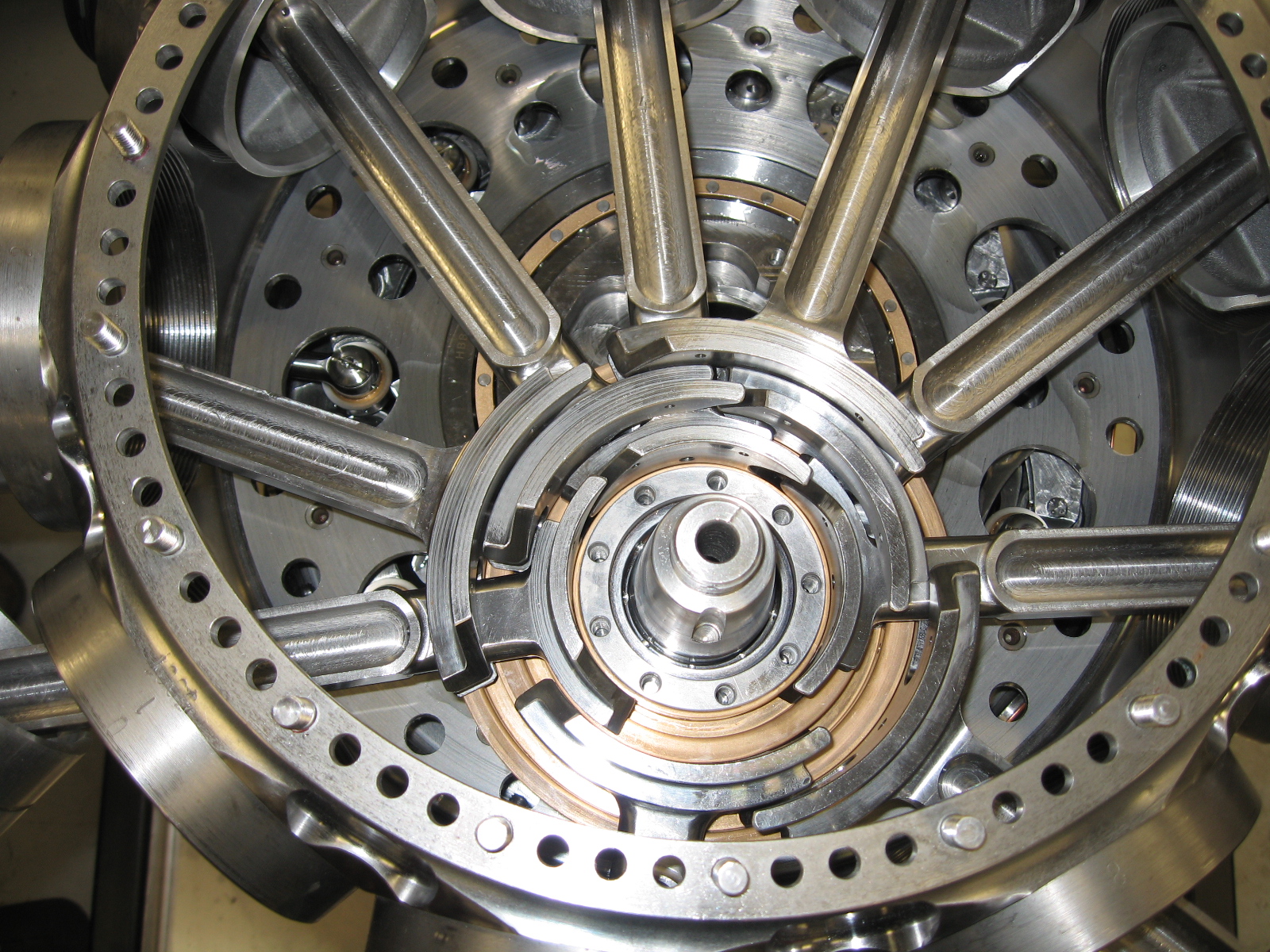Full set of Nine conrods in position in thrustblock
