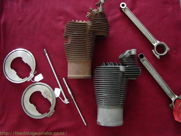 Some of the parts that have been reproduced to manufacture the entire RAF1a engine. These parts include complete cast iron cylinders connecting rods cylinder studs and oil slinger rings for the crankshaft.