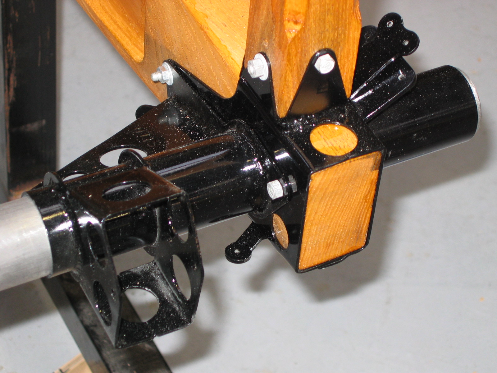 Detail of forward lower fittings after painting and installation of hardware.