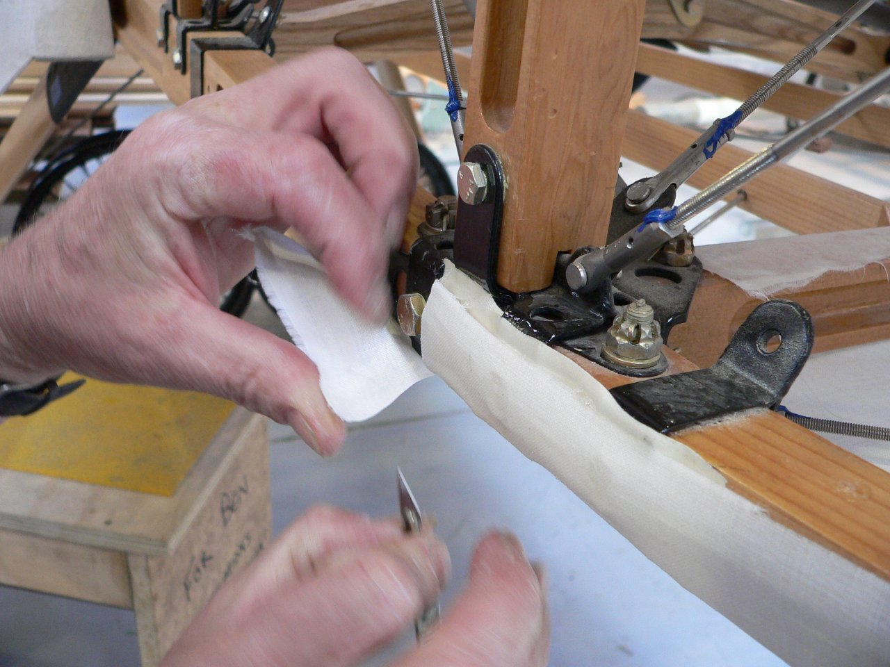 Attaching fabric to fuselage longerons