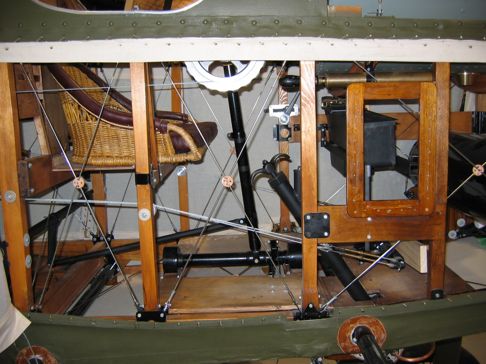 Pilots area details showing hand air pump ammo box control stick and constantinesco pump.