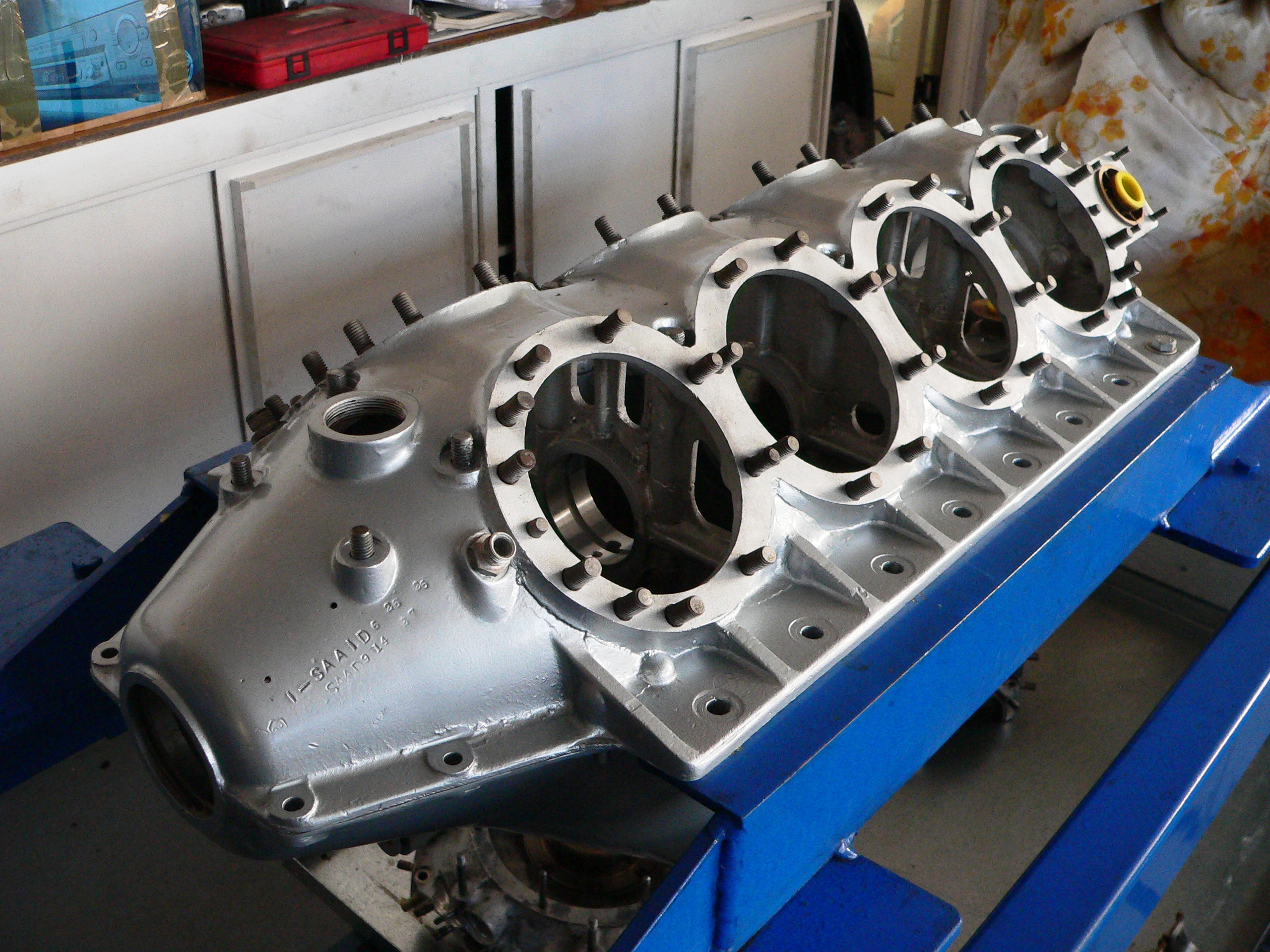 Hispano Suiza crankcase cleaned, inspected and ready for assembly
