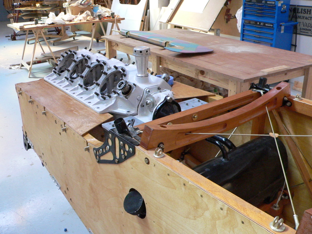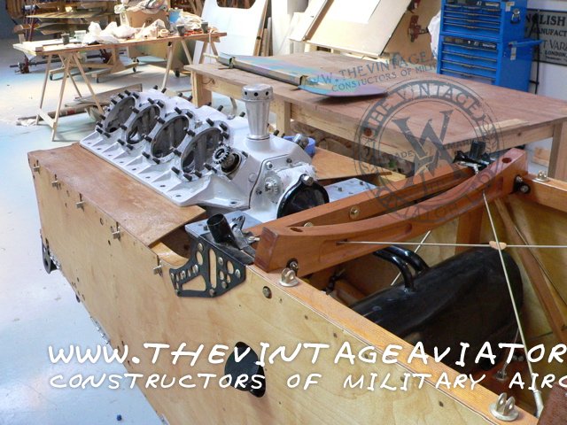 Bare crankcase in position to drill engine mount bearers on SE.5a.