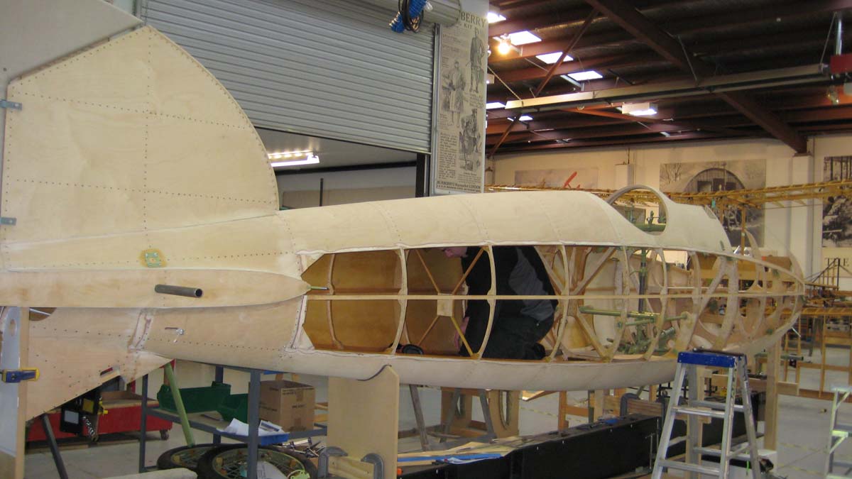 Anton Schmitz looking for the back seat in our Albatros DVa, actually he is preparing to "back up" the longeron while the last side panel is nailed on