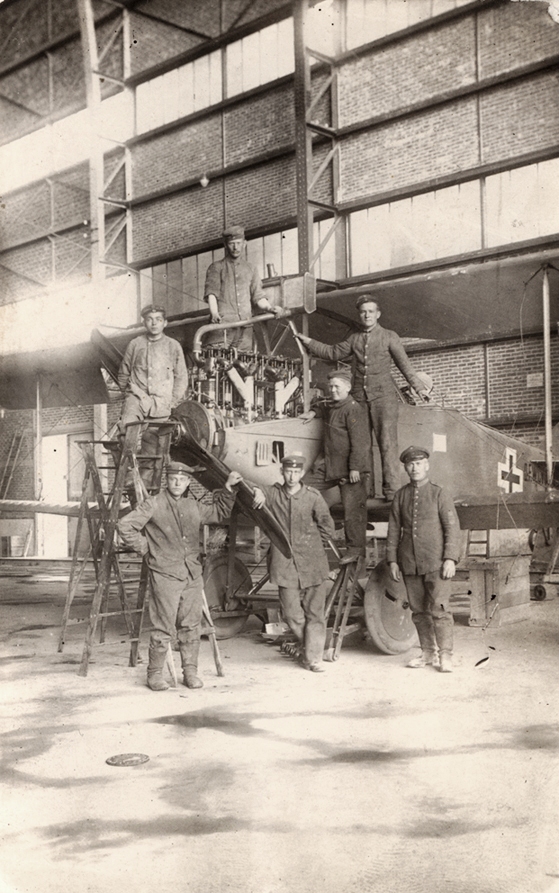 German mechanics servicing engine