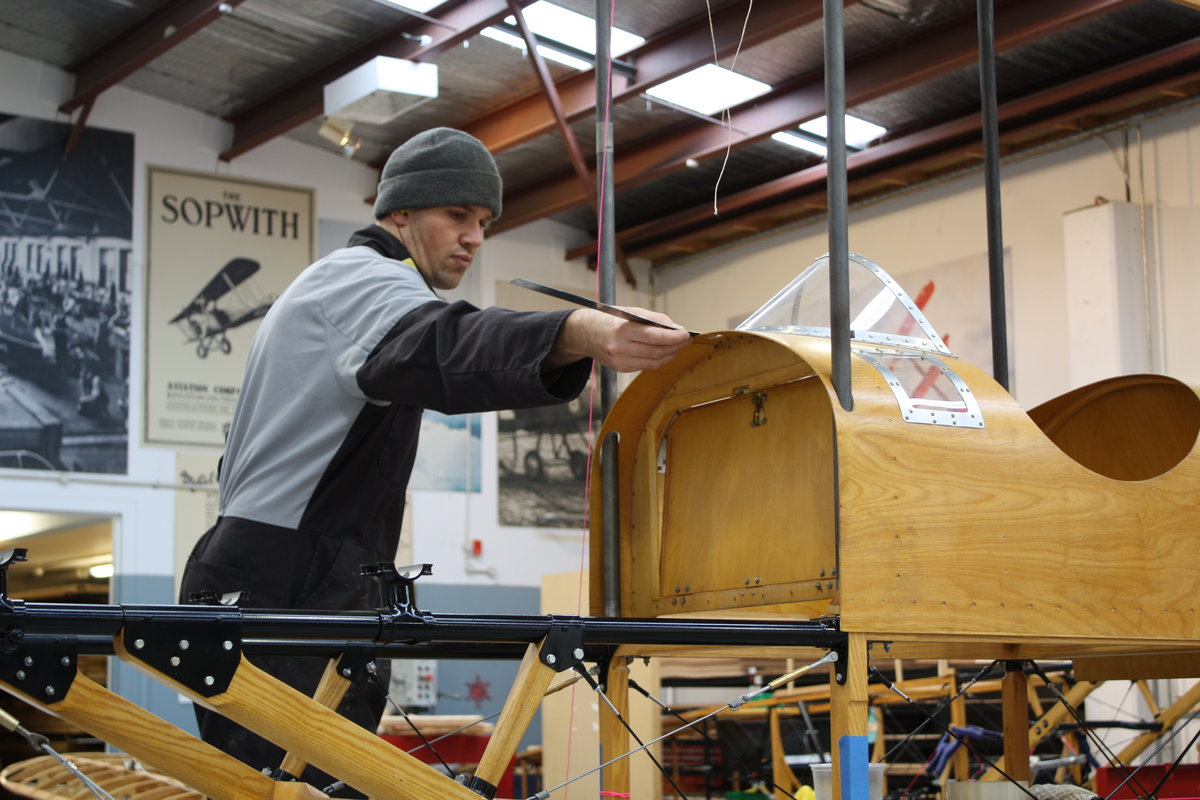 Elliot Eaton measures forward cockpit in order to fabricate fuel tank cover