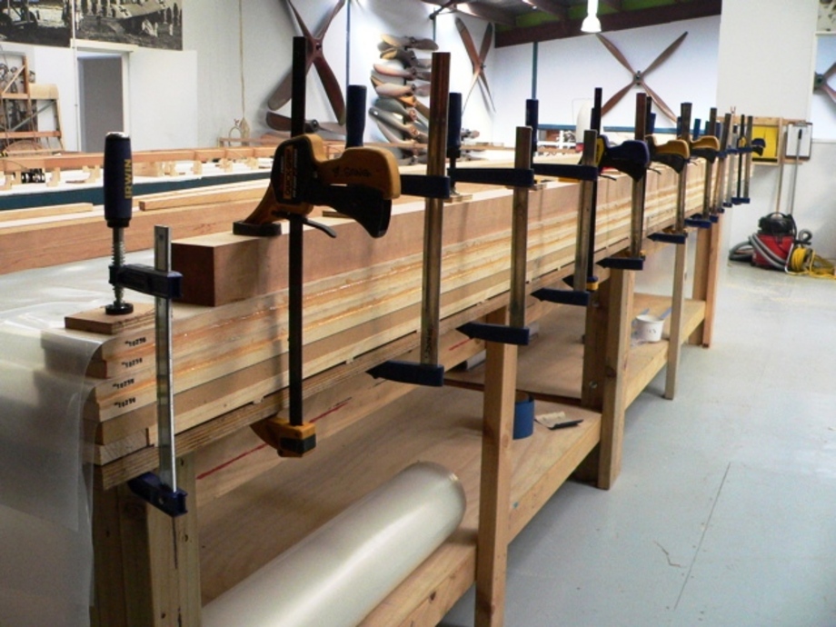 Laminating two BE2e main spars at the same time