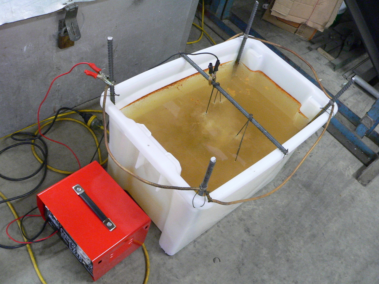 Simple "De-rusting" tank used to clean ferrous parts