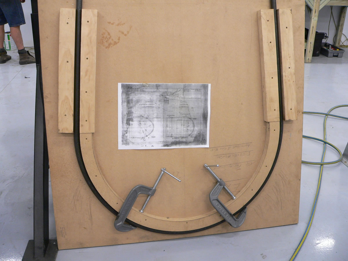 Bending template for forming steel tubes at the front of the nacelle. Note original drawing.