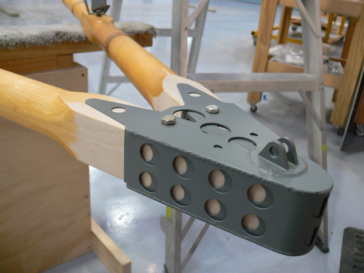 Upper and lower outrigger pairs are joined in this fashion. The fork fitting supports the rudder spar tube that the rudder pivots around.