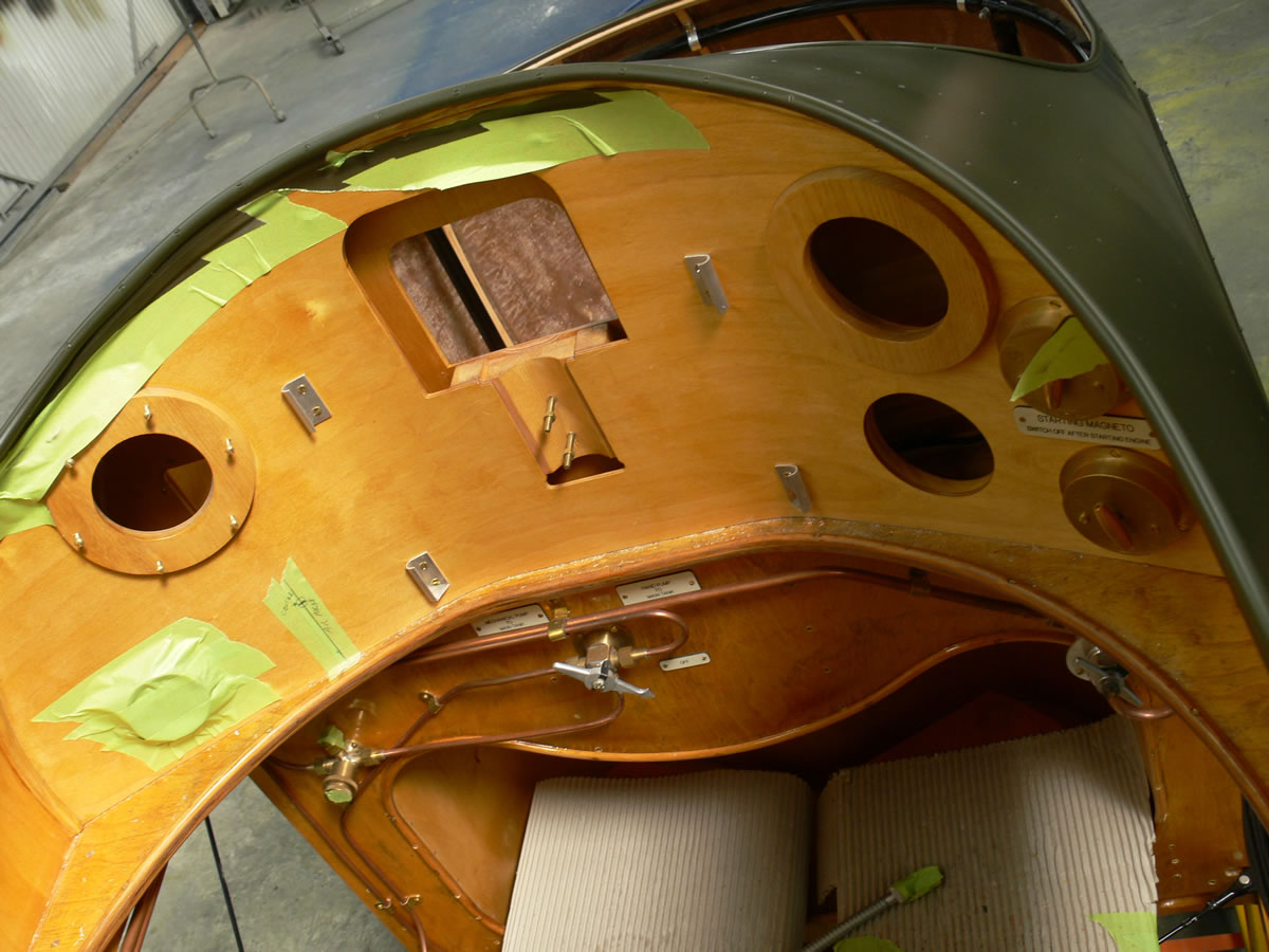 The pilots cockpit with air and fuel valves installed and reproduction Thomson Bennet magneto switches in place and instruments removed