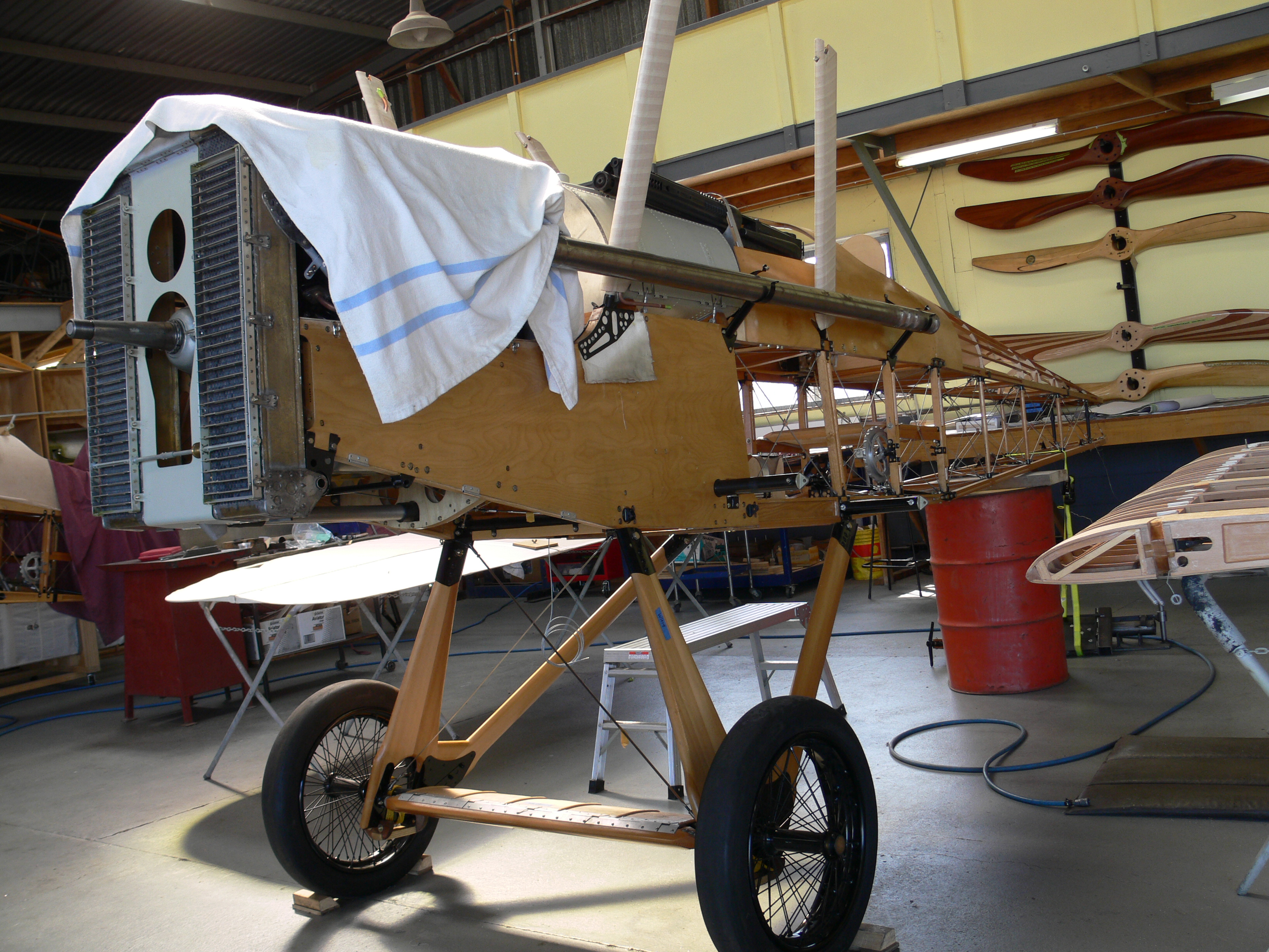 SE 5a Fuselage ready for cover note fabric wrapped cabane struts.