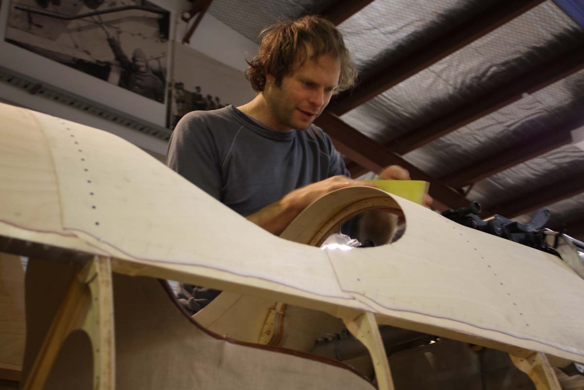 Malcolm sanding upper skin forward cutout.