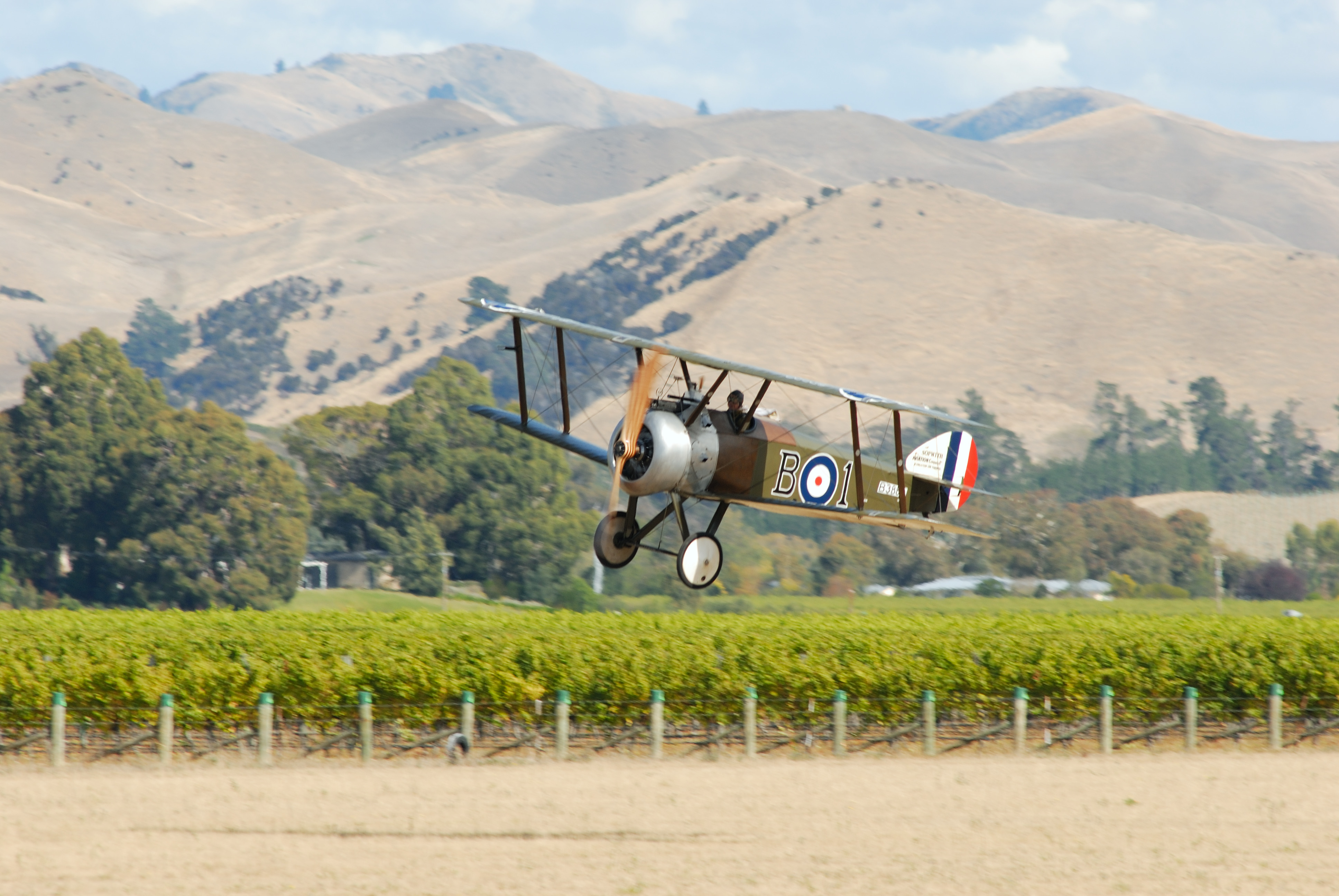 Sopwith Camel side slips over the runway threshold