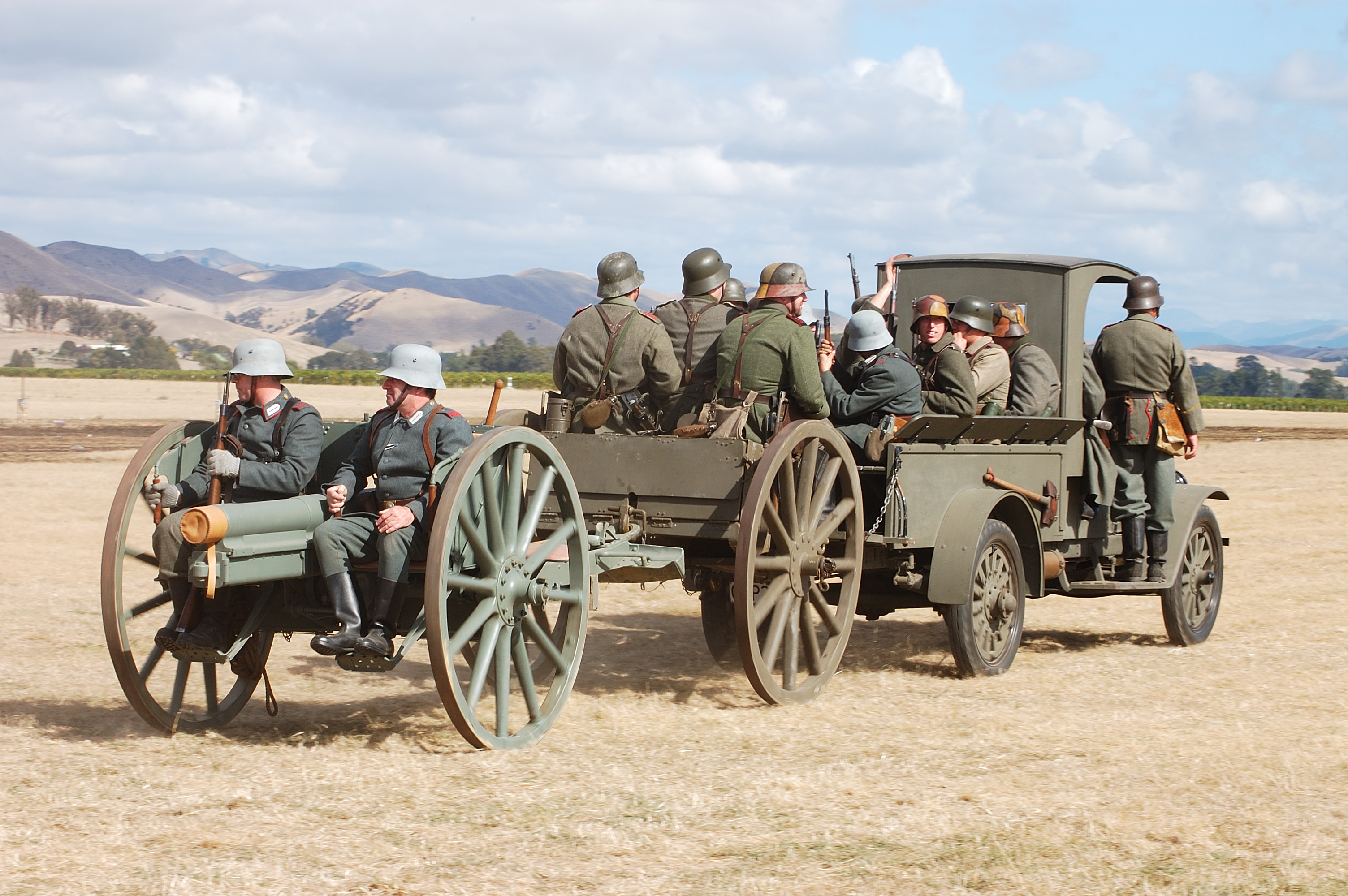 Original WW1 Stewart truck pulling field gun and limber