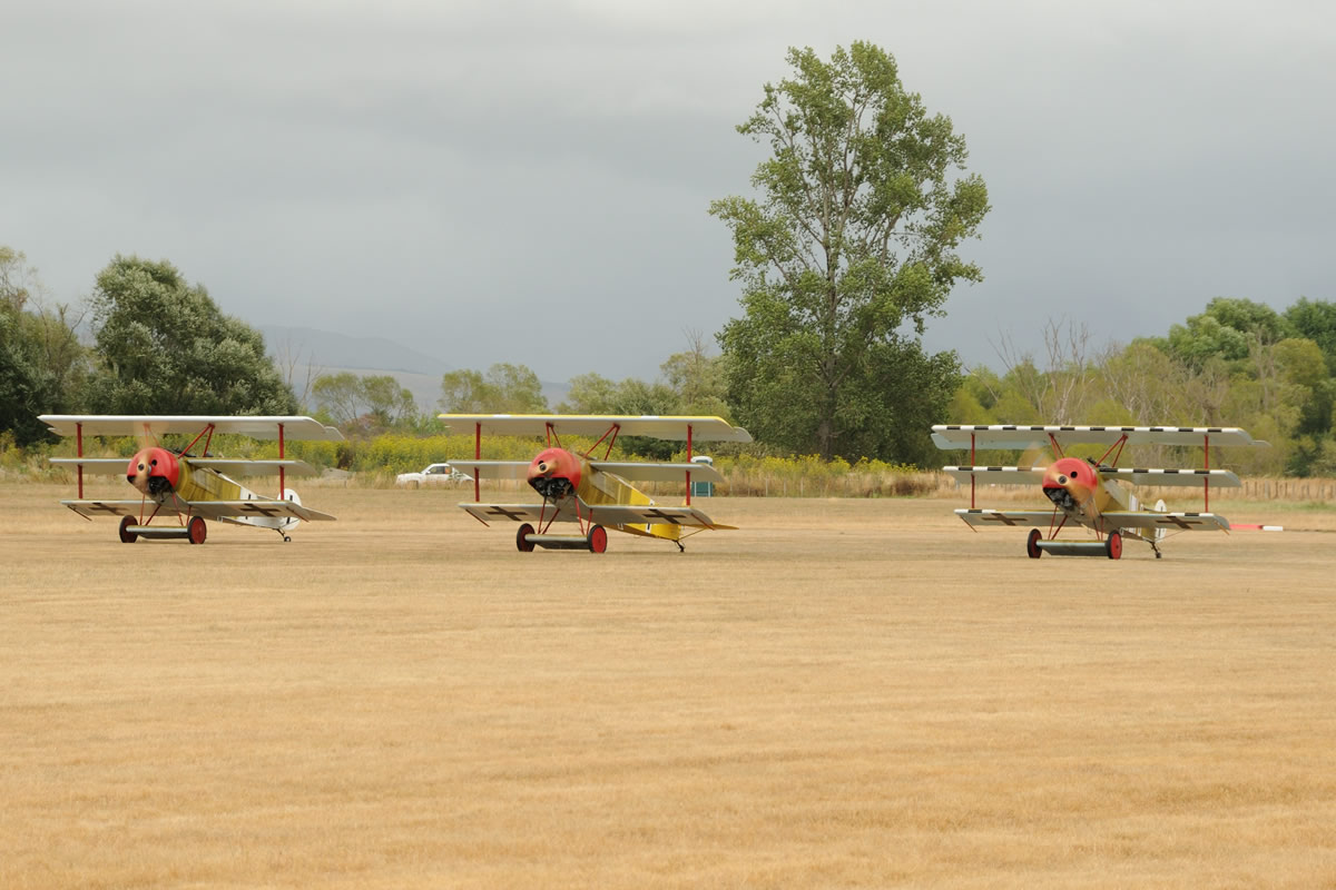 Fokker triplanes roll for take off