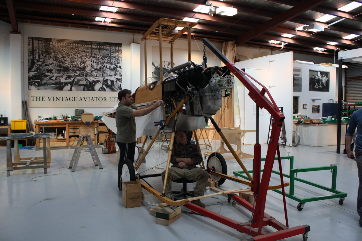 Paul installs fuselage fabric while Bruce fabricates the lower cowling