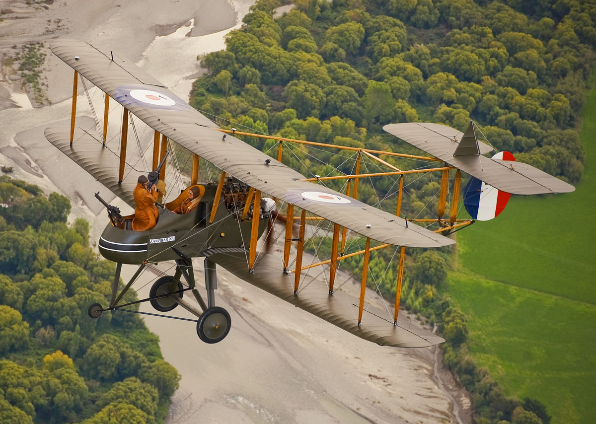 FE2B in flight over river
