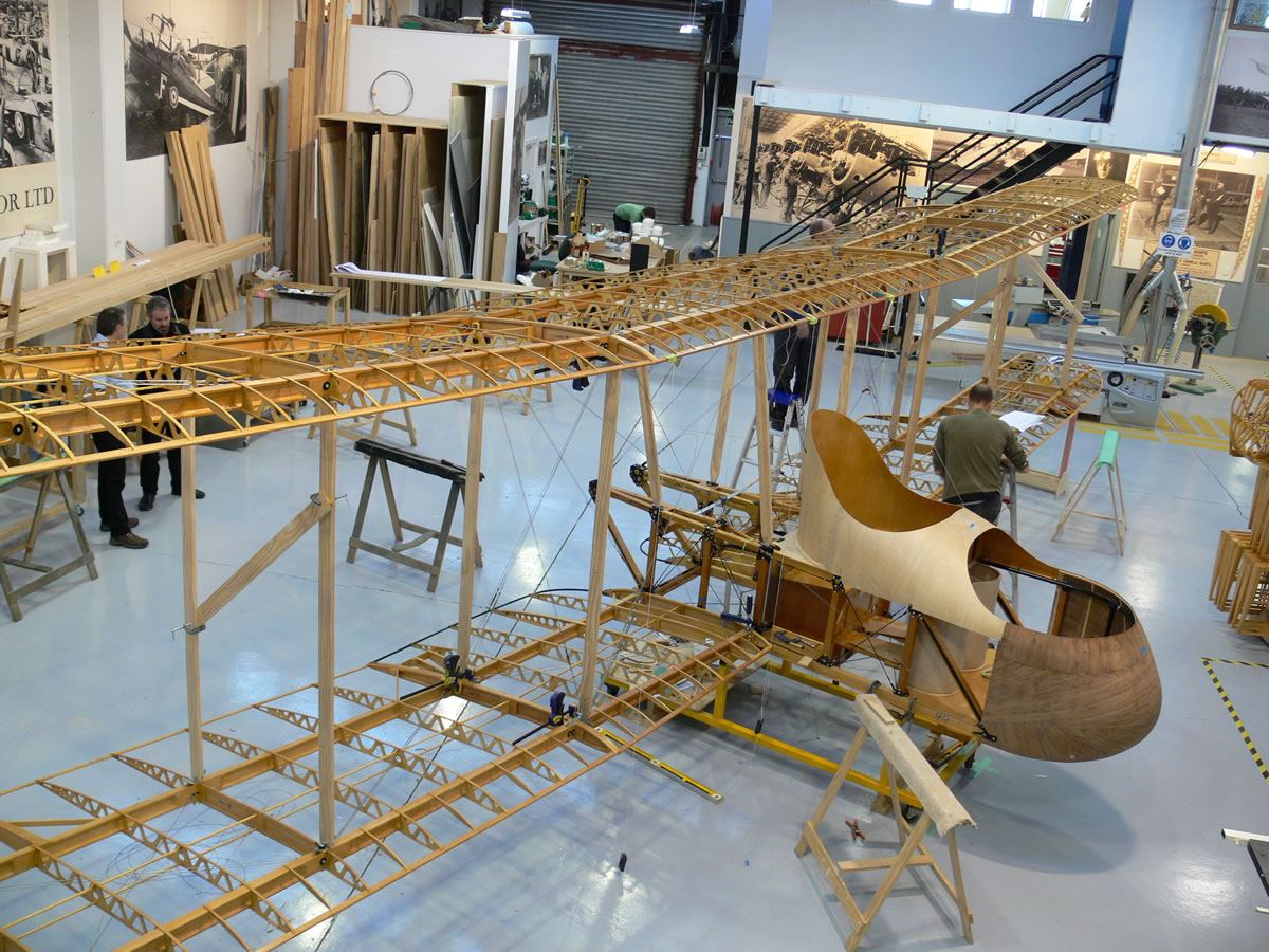 The Fee grows to nearly 50 foot span as the upper wings and centre sections are fitted, temporary struts have been used here.