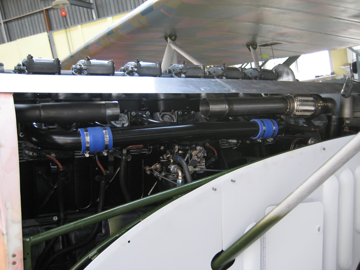 New intake manifold fitted to the overhauled Gipsy engine, exhaust just being completed