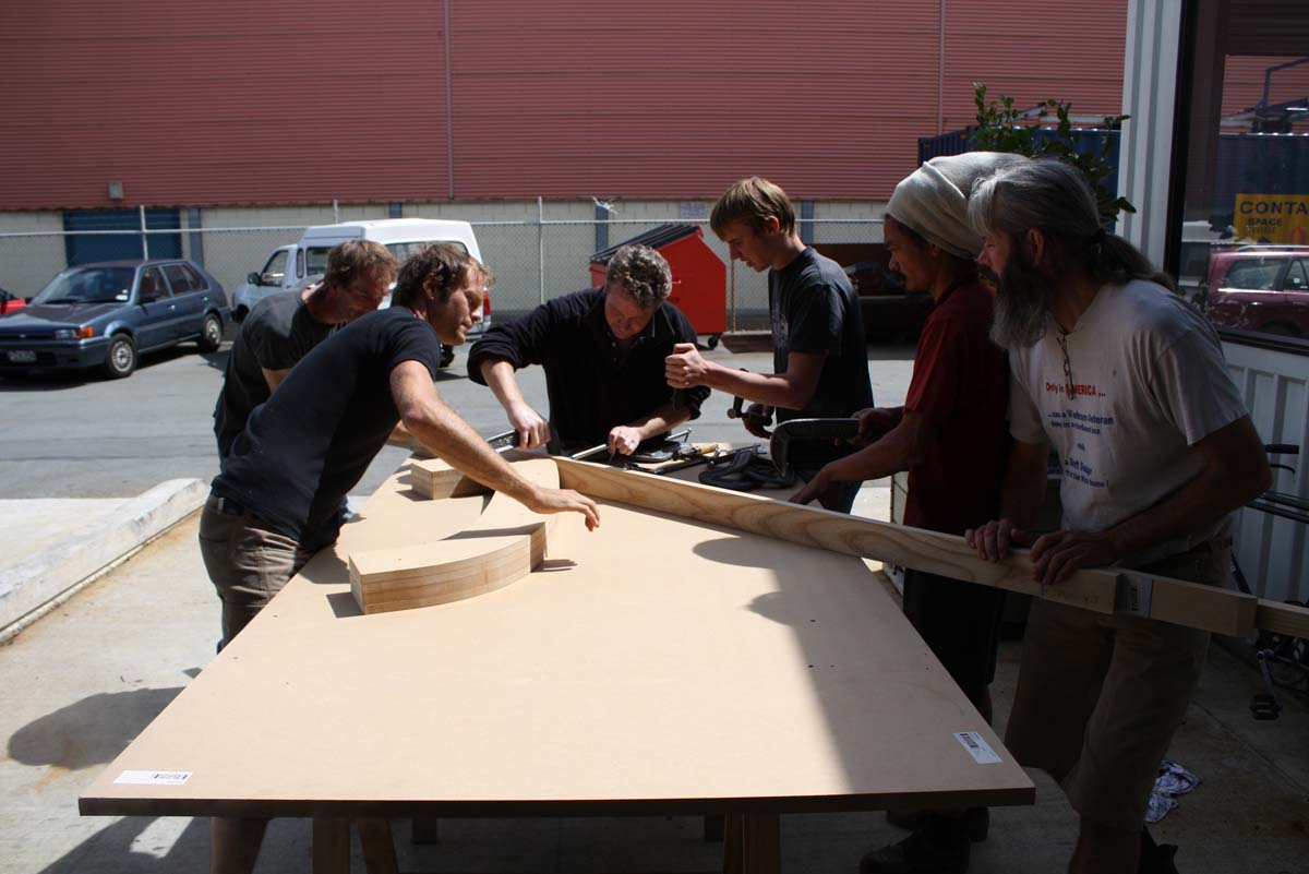 Team required to steam bend ash timber