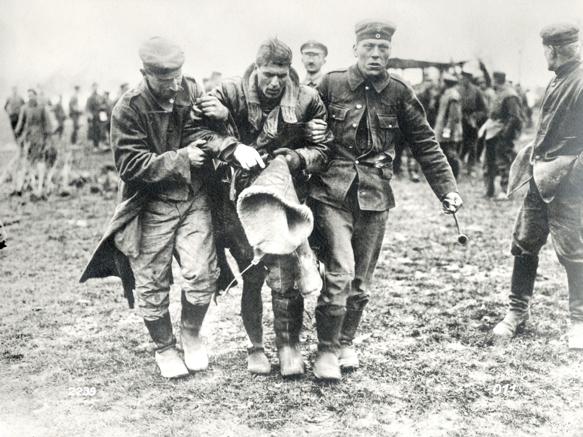 German troops helping wounded British pilot