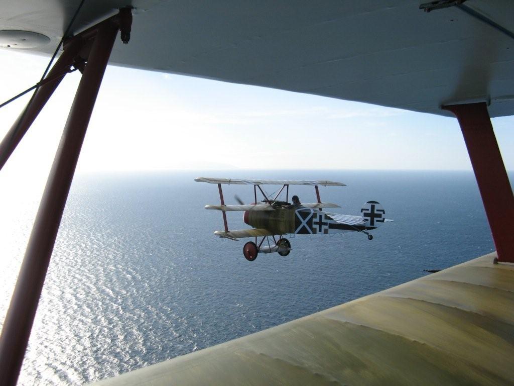 Fokker Dr-1 framed by another Fokker Dr-1�s wings
