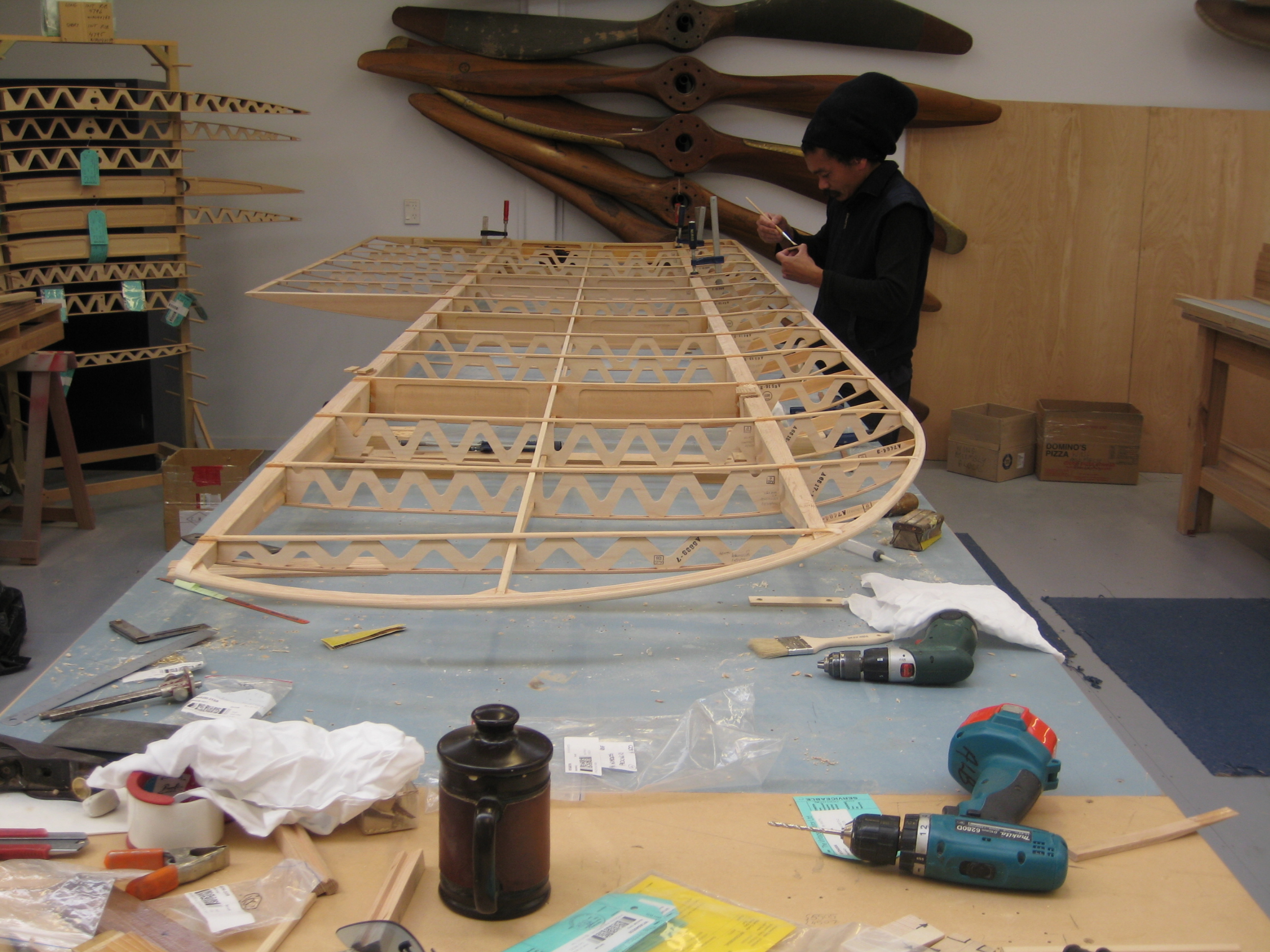 Andre Laborde applying finishing touches to BE2c wing panel