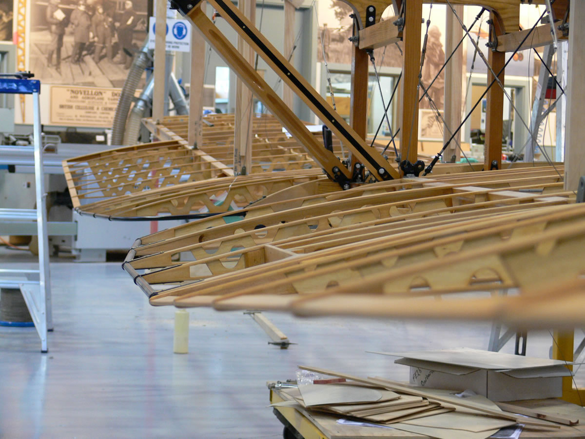 Close up of the Fee lower centre sections and the aft end of the nacelle, note the metal trailing edges and the wire bracing.