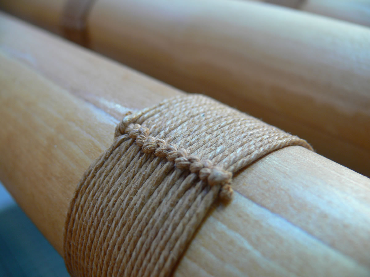 Detail of the linen cord that binds the outriggers to prevent splitting.